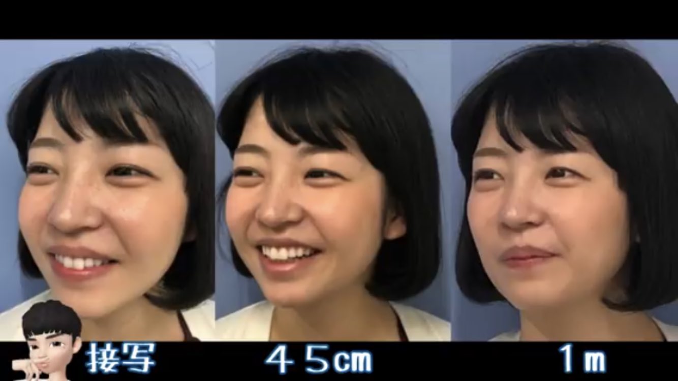 まいめろ On Twitter 鏡で見る顔と写真に写る顔は何故違うのか という質問に対して 携帯のカメラは歪むから だそう 同じiphoneで近くで撮った写真 離れて拡大して撮った写真でこんな顔が違うことに驚いた